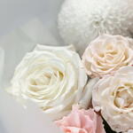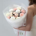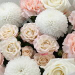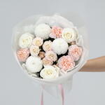 Ribbon - 1 pcs Spray rose - 1 pcs rose - 3 pcs packaging - 3 pcs dianthus - 5 pcs super bowl - 3 pcs