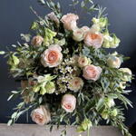 Greenery - 10 pcs Lisianthus - 5 pcs Wax flower - 10 pcs rose - 25 pcs eucalyptus parvifolia - 5 pcs