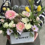 A fresh breeze of spring, captured in a stylish wooden box. Seasonal blooms arranged with care to bring warmth, color, and charm to any space. Perfect as a gift or a treat for yourself. Size: Medium Style: Natural, light, and elegant Includes: Fresh seasonal flowers + decorative accents Handcrafted with love at Lillekoda, Tallinn.