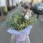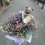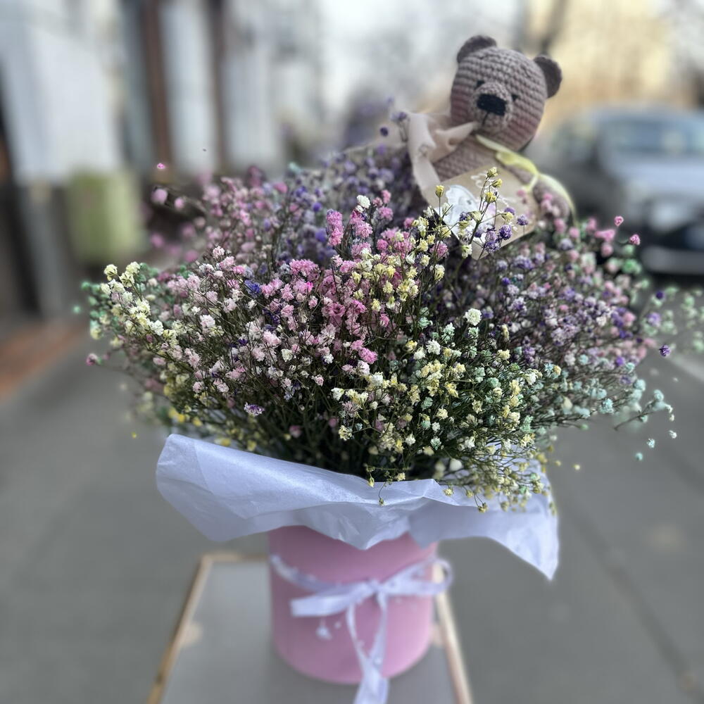 Box - 1 pcs Rainbow Gypsophila - 35 pcs handmade teddy bear - 1 pcs