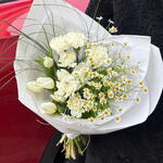 Tulip - 7 pcs carnation - 7 pcs camomile - 4 pcs bergrass - 1 pcs