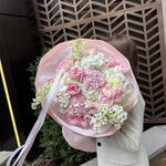 ranunculus - 3 pcs lilac white - 3 pcs hyndrangea - 6 pcs roses - 15 pcs