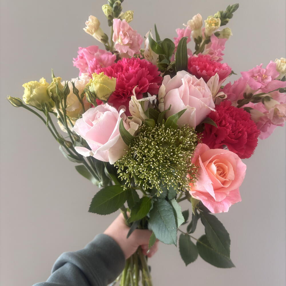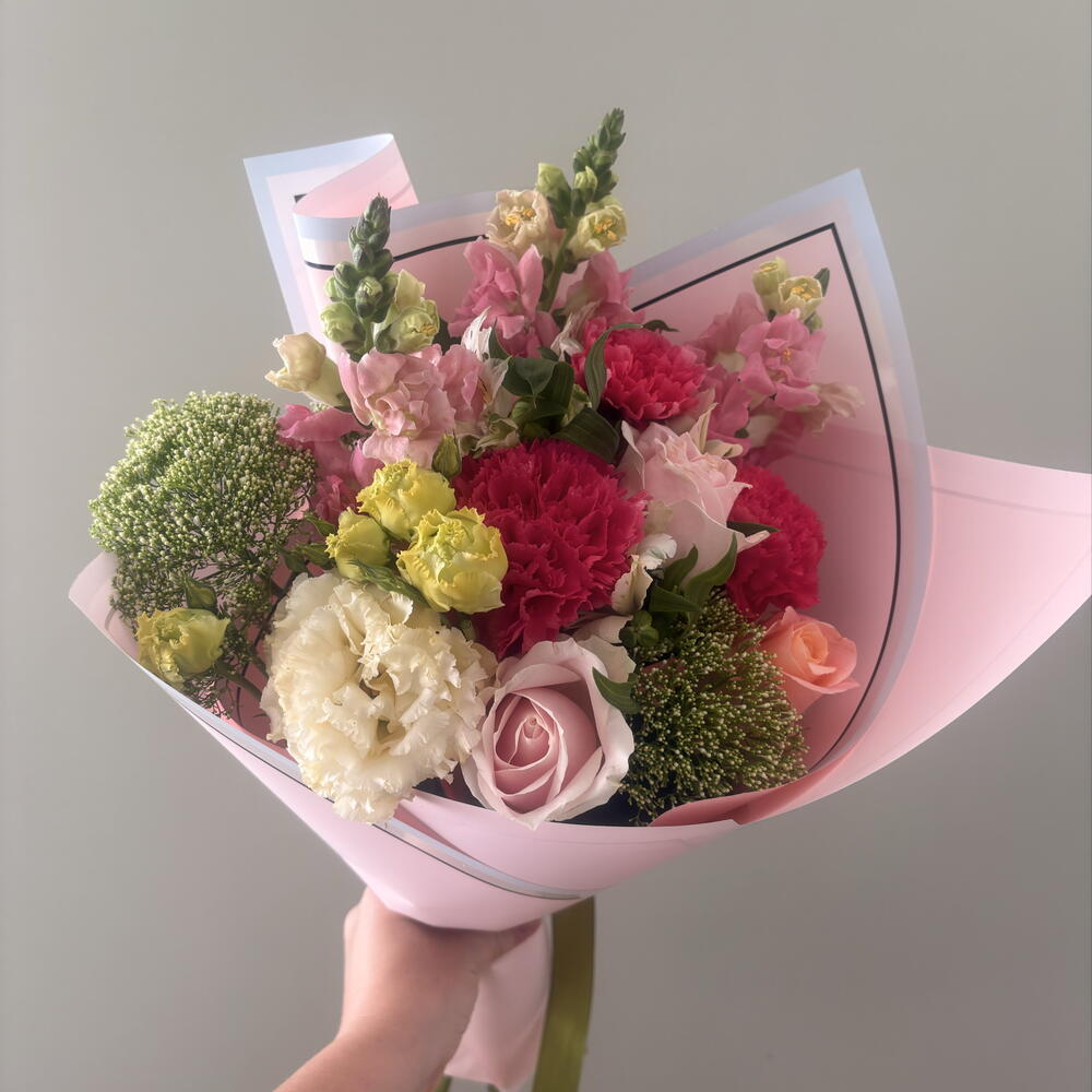 Snapdragon - 3 pcs Lisianthus - 1 pcs carnation - 3 pcs roses - 3 pcs