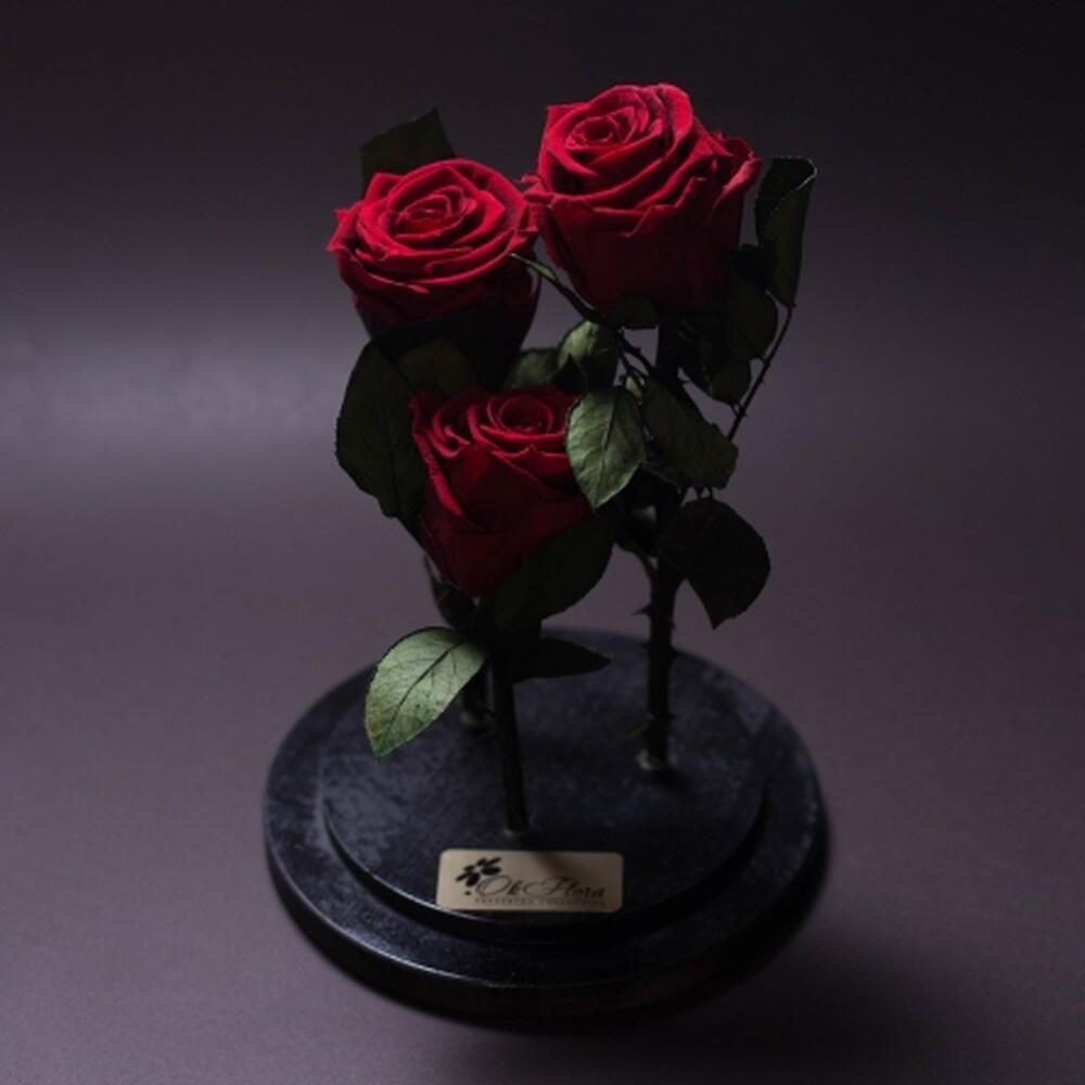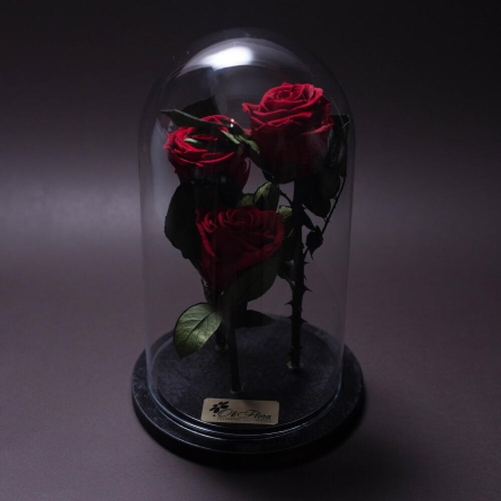 Glass dome - 1 pcs stabilized red roses - 3 pcs