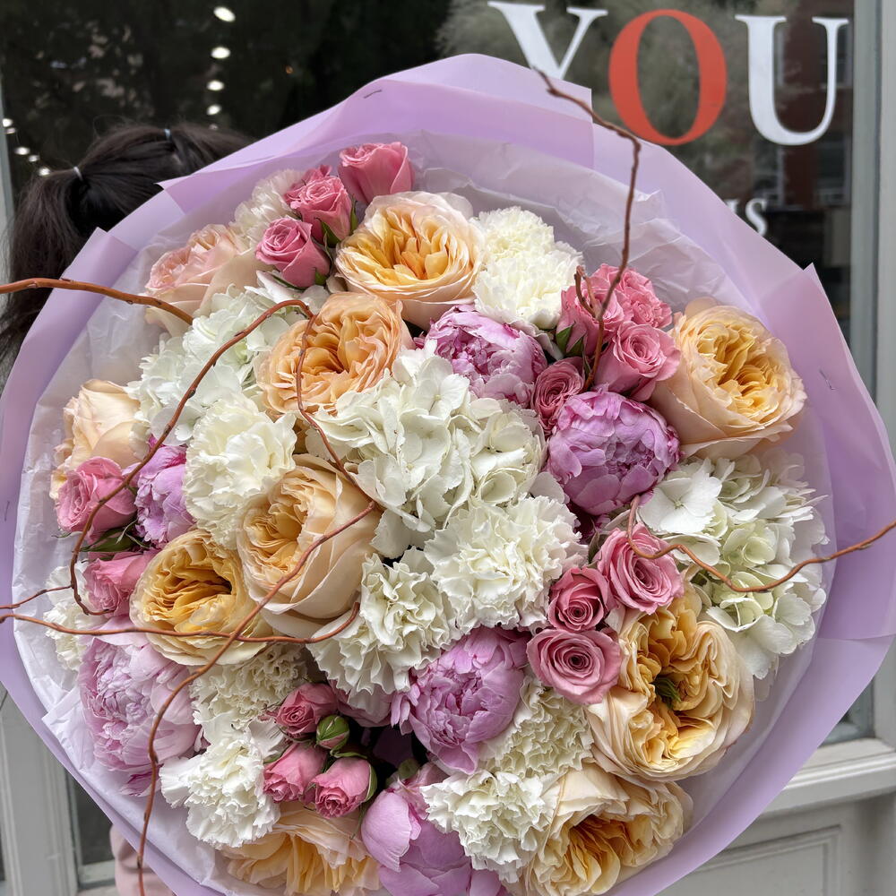 Summer Bouquet L size( peonies, garden roses, hydrangeas , spray roses)