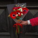 Perfect combination of red ranunculuses and anemones paired with chammomile. Great gift for any occasion!