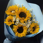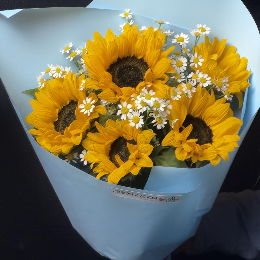 ️ ️ Sunflower and Daisy Bouquet in Blue Wrapping