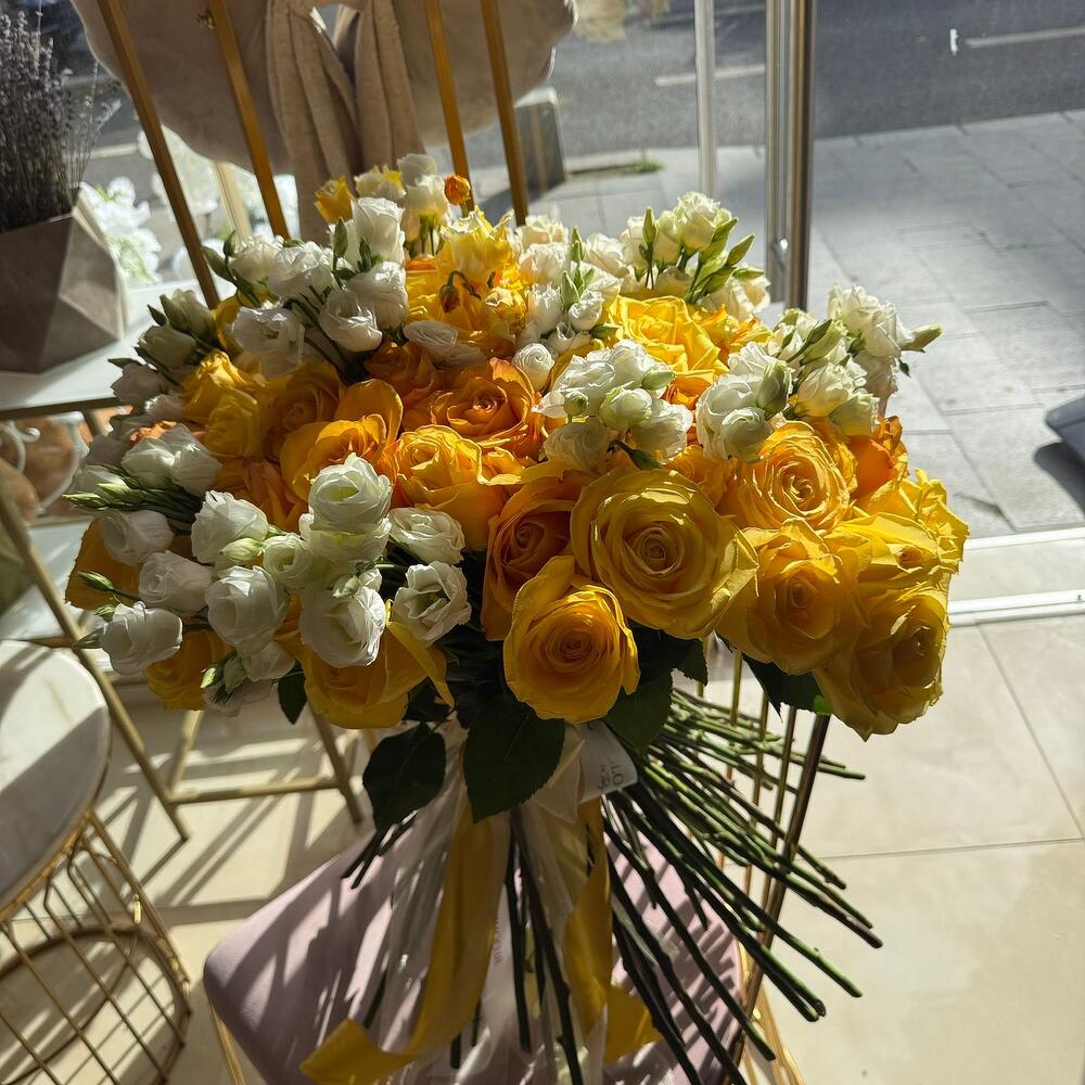 Eustoma - 12 pcs ranunculus - 8 pcs trandafiri - 25 pcs