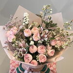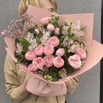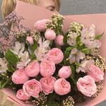 Peony rose - 5 pcs Limonium - 1 pcs Alstroemeria - 2 pcs Viburnum - 1 pcs
