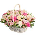 Eustoma - 6 pcs carnation - 3 pcs spray roses - 6 pcs pink roses - 4 pcs green accessories - 3 pcs basket - 1 pcs orchid cymbidium - 3 pcs