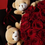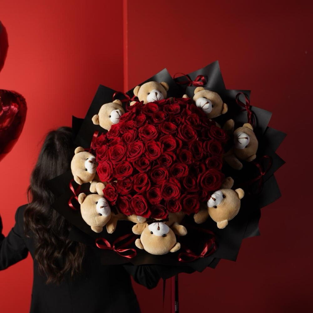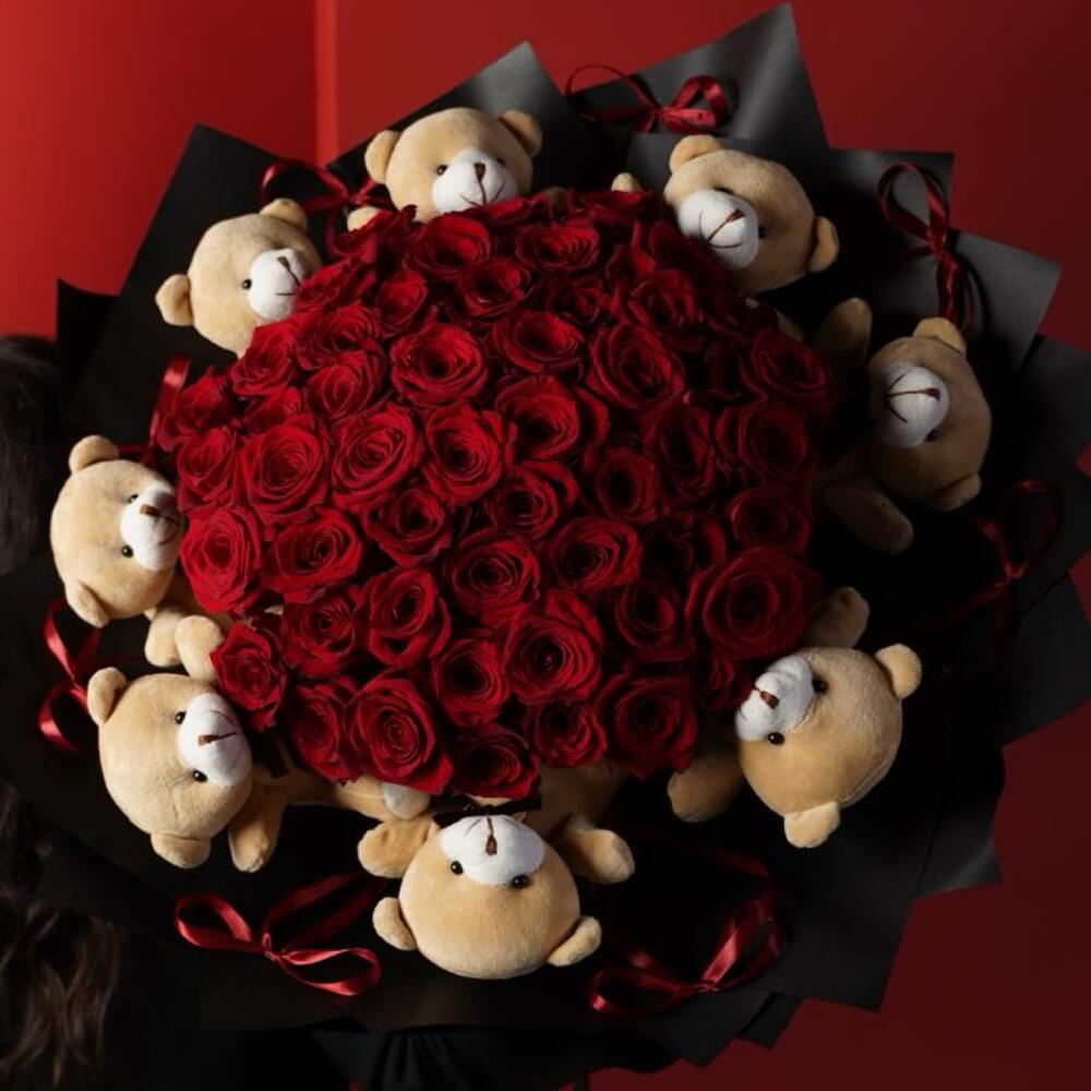 Teddy bear - 8 pcs paper - 6 pcs ribbon satin - 1 pcs roses - 51 pcs