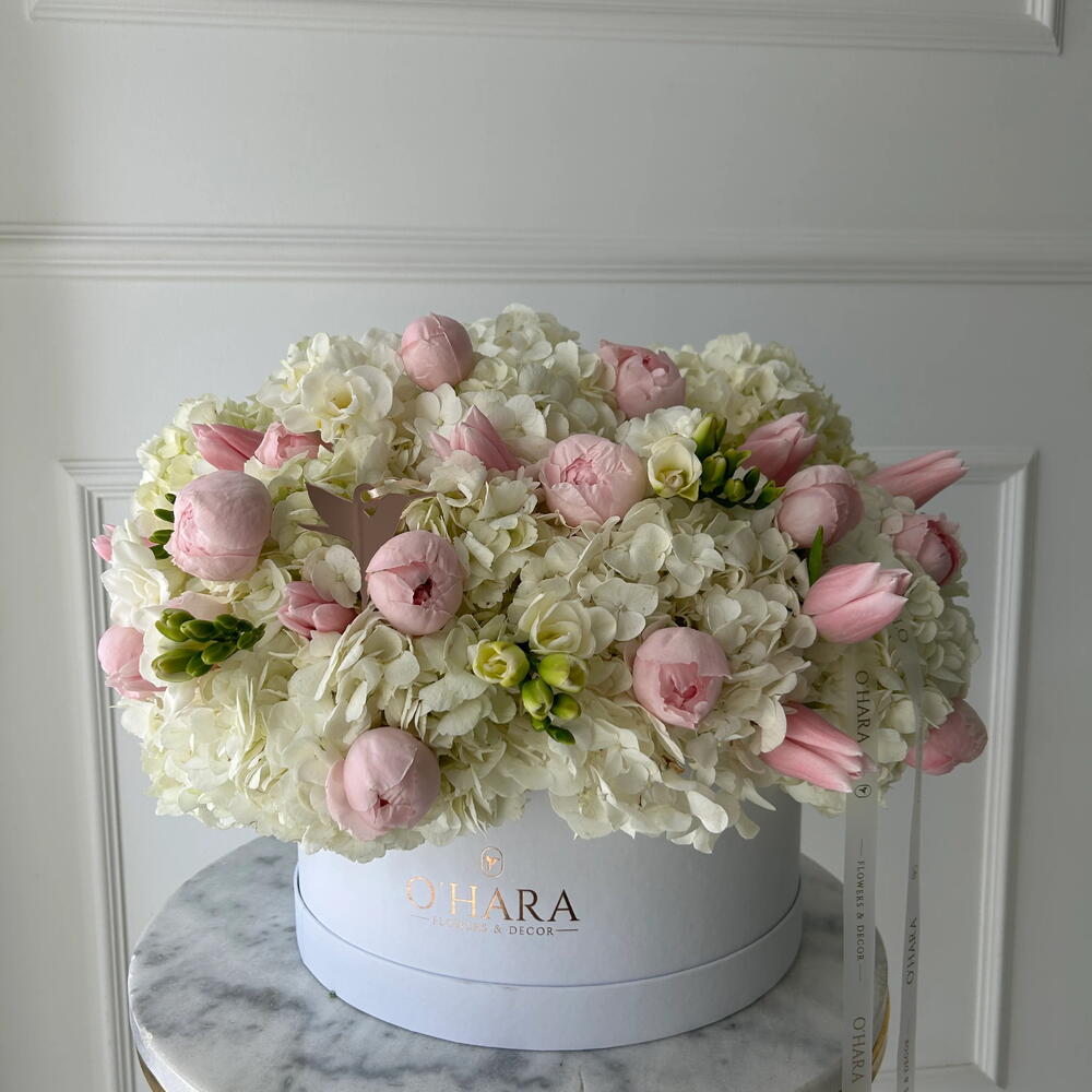 Tulips - 15 pcs Hydrangea - 15 pcs Freesia - 10 pcs peony pink rose - 10 pcs