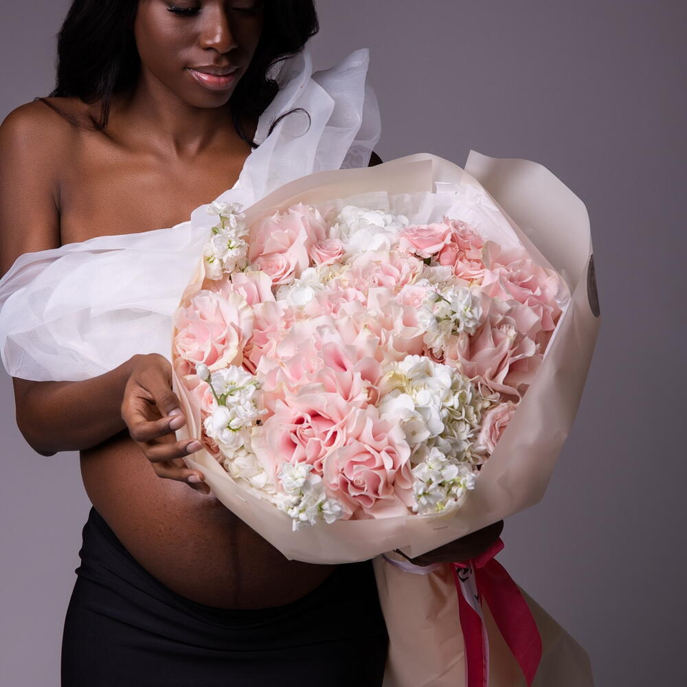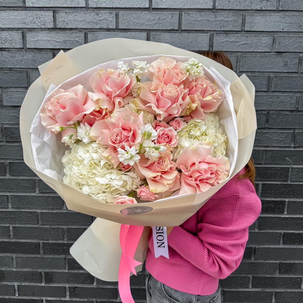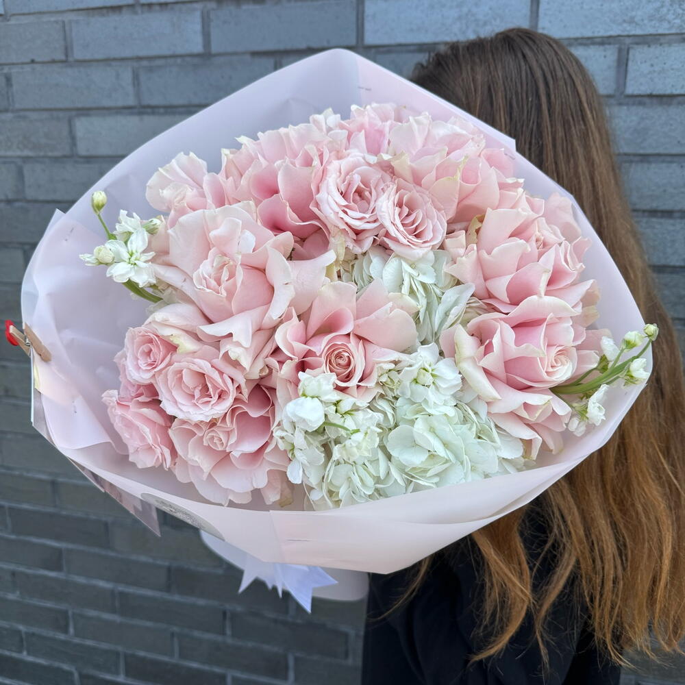 Tenderness Feelings M Size (French Pink roses, spray pink roses, hydrangeas , stocks)