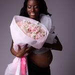 Букет красивый получился. Доставили немного позже назначенного времени, не критично для нас это было. Фото отчет сделали быстро. Доставка считаю дорогая, плюс большие розы не первой свежести были.