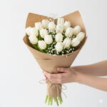 Gypsophila - 2 pcs decor - 2 pcs white tulips - 20 pcs