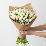 Gypsophila - 3 pcs decor - 3 pcs white tulips - 49 pcs