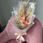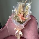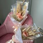 Trockenblumenstrauß Pfirsich In mühevoller Handarbeit gefertigter Strauß aus Trockenblumen mit vielen verschiedenen Gräsern, wie Pampasgras, Delphinium, Lagurus, Ruscus und vielen anderen schönen trockenen Blüten. Das Highlight setzen pfirsichfarbene Infinity-Rosen, die den Strauß zu einem echten Blickfang werden lassen. Der Stiel des Straußes wird mit passendem Satinband umgewickelt. Gesamtlänge beträgt in etwa 55 cm und kann auf Wunsch gekürzt werden. Der Strauß besteht aus echten natürlichen, getrockneten oder konservierten Materialien und benötigt daher kein Wasser oder Pflege. Nach der Hochzeit kann das Arrangement als Erinnerung und Deko im Interieur dienen. Die Erstellung jedes Arrangements erfolgt individuell mit viel Leidenschaft für unser Handwerk und somit ist auch jeder Strauß ein Einzelstück und kann etwas von Abbildungen abweichen. Es handelt sich um ein Naturprodukt, dadurch sind naturbedingte Abweichungen in der Form, Farbe oder Größe zu den Angaben möglich! Die Produktionszeit bis wir die Sendung in den Versand geben können, kann bis zu 10 Werktage betragen. Darum bitten wir um möglichst eine vorzeitige Bestellung! Um die Farbintensität des Trockenblumen-Bouquets mehrere Jahre aufrecht zu erhalten, sollten die Blumen nicht der direkten Sonneneinstrahlung ausgesetzt werden. Unsere Trockenblüten wurden einem aufwendigen Trocknungs- und Konservierungsverfahren bzw. einer Bleichung oder Färbung unterzogen , dadurch hält der getrocknete Blumenstrauß bei der richtigen Pflege eine sehr lange Zeit und strahlt eine schöne Farbintensität aus. Individuelle Anfragen nehmen wir sehr gerne entgegen, dazu einfach eines unserer vielen Kontaktmöglichkeiten nutzen.