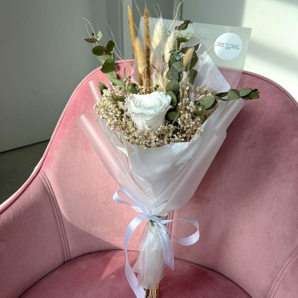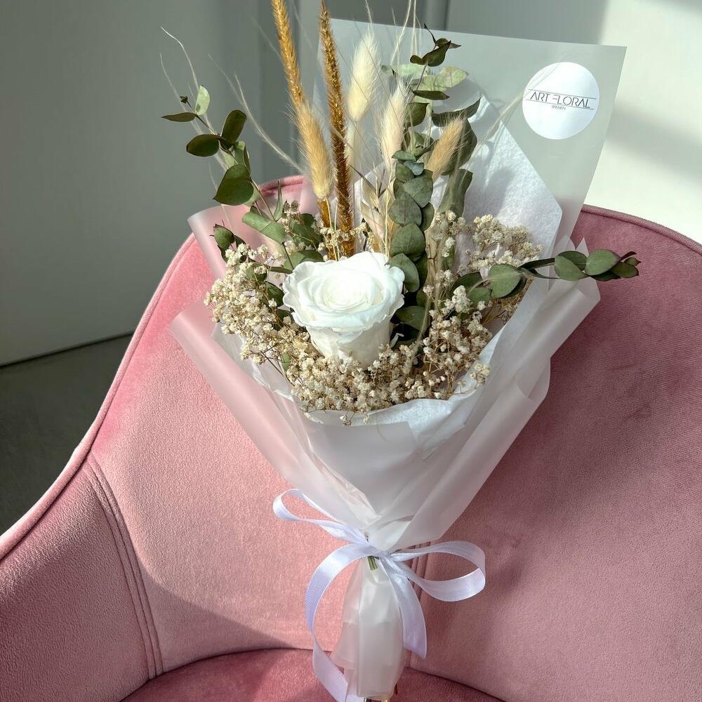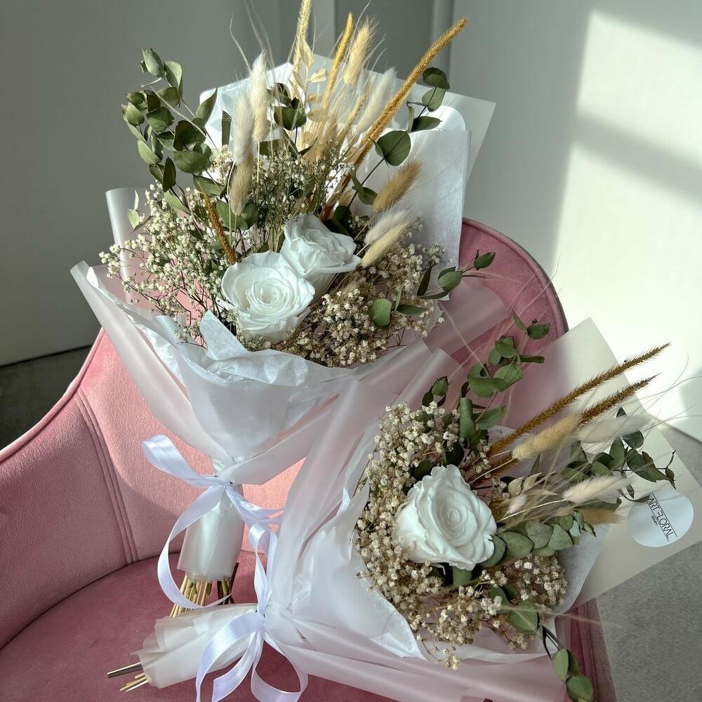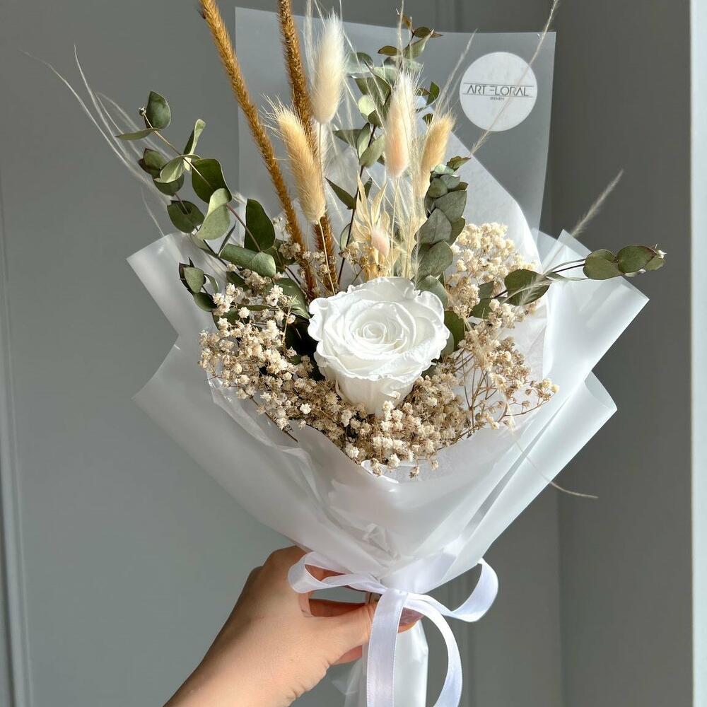 Eucalyptus - 4 pcs Rosen - 1 pcs Gypsophila - 5 pcs lagurus - 5 pcs