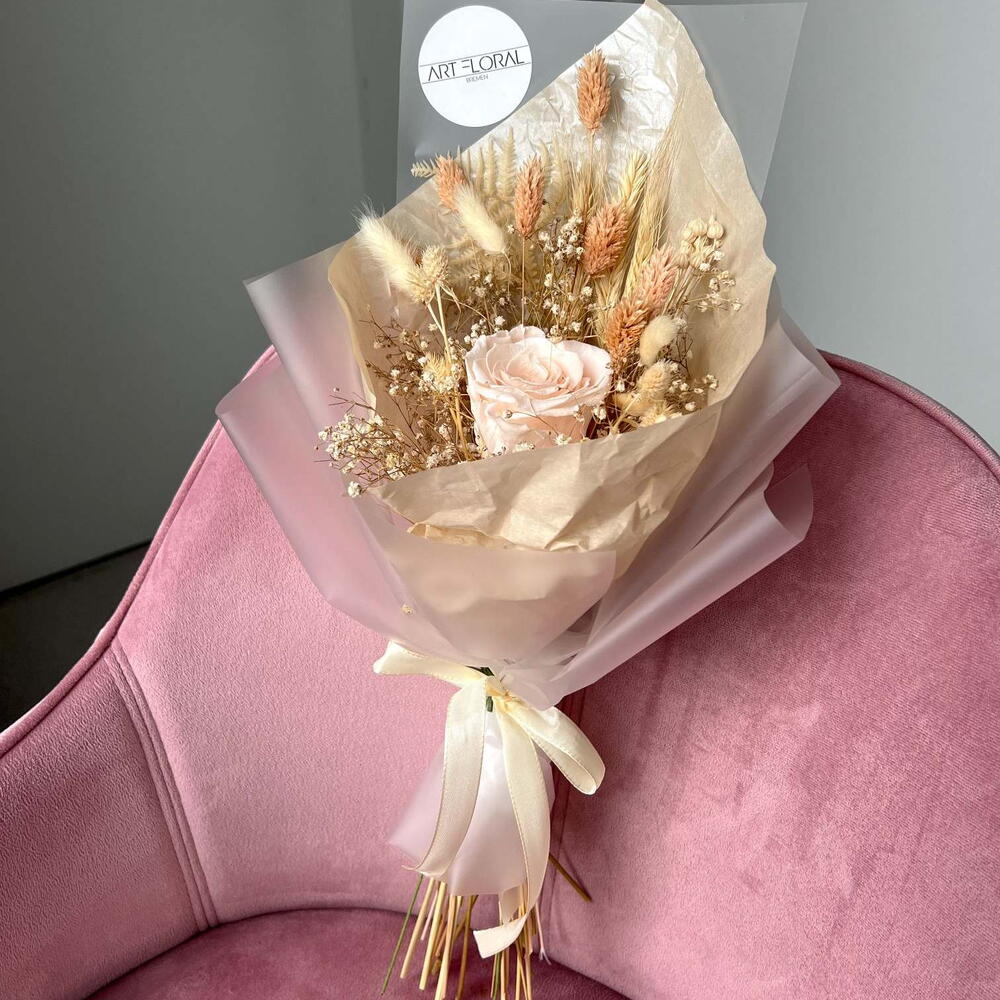 lagurus - 3 pcs gypsophila - 4 pcs phalaris - 5 pcs weizen - 2 pcs konservierte rose - 1 pcs