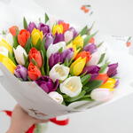 Behold the captivating beauty of our handcrafted Tulip Bouquet, featuring 50 vibrant stalks in an array of breathtaking colors. Each stem embodies the essence of joy and vitality, infusing any space with a burst of lively energy and natural elegance. Perfect for any celebration or as a thoughtful gift, this exuberant Tulip Bouquet is a testament to the splendor of natures finest offerings.