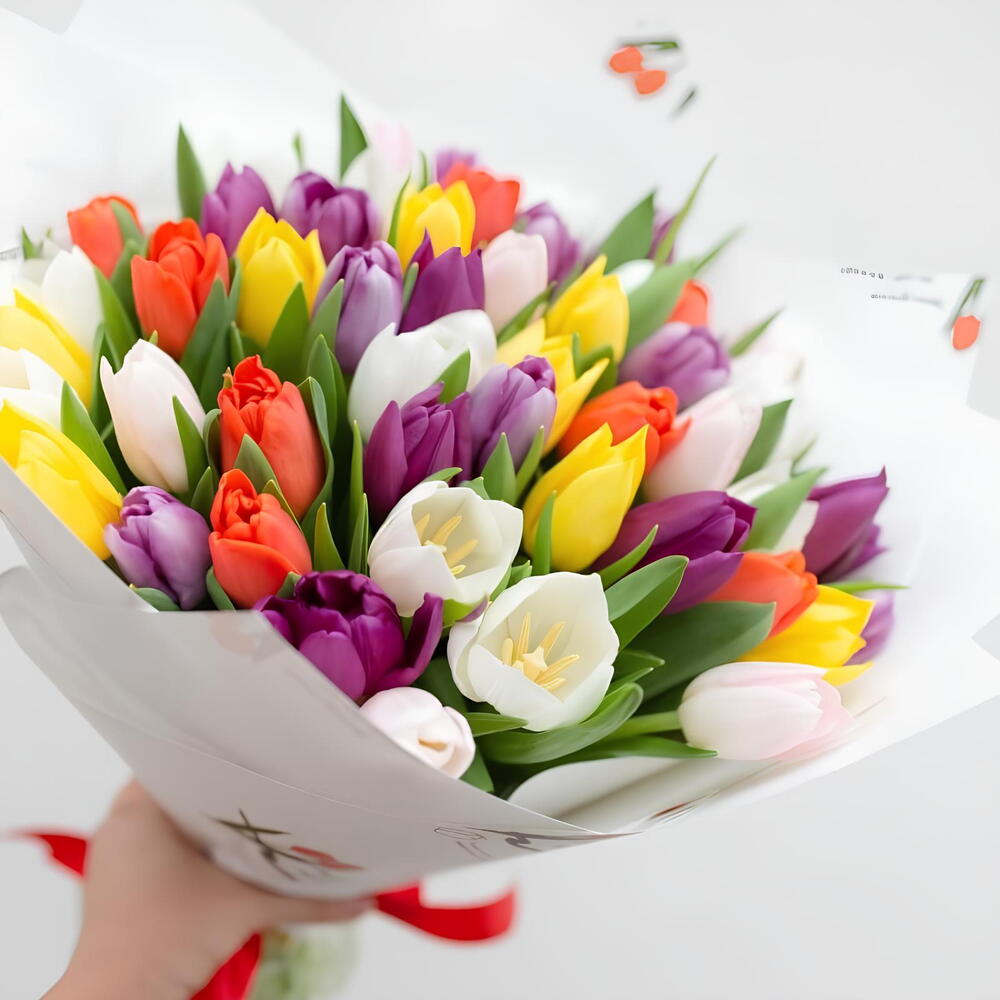 Behold the captivating beauty of our handcrafted Tulip Bouquet, featuring 50 vibrant stalks in an array of breathtaking colors. Each stem embodies the essence of joy and vitality, infusing any space with a burst of lively energy and natural elegance. Perfect for any celebration or as a thoughtful gift, this exuberant Tulip Bouquet is a testament to the splendor of natures finest offerings.
