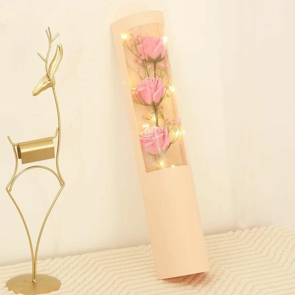 9 Elegant Pink Rose Bouquet in a Box with LED Lights