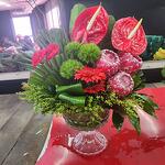 king protea - 3 pcs red anthurium - 2 pcs iris mosses - 3 pcs