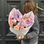 Hydrangea - 1 pcs rose - 5 pcs carnation - 5 pcs bush rose - 2 pcs mattiola - 4 pcs decorative branches - 4 pcs