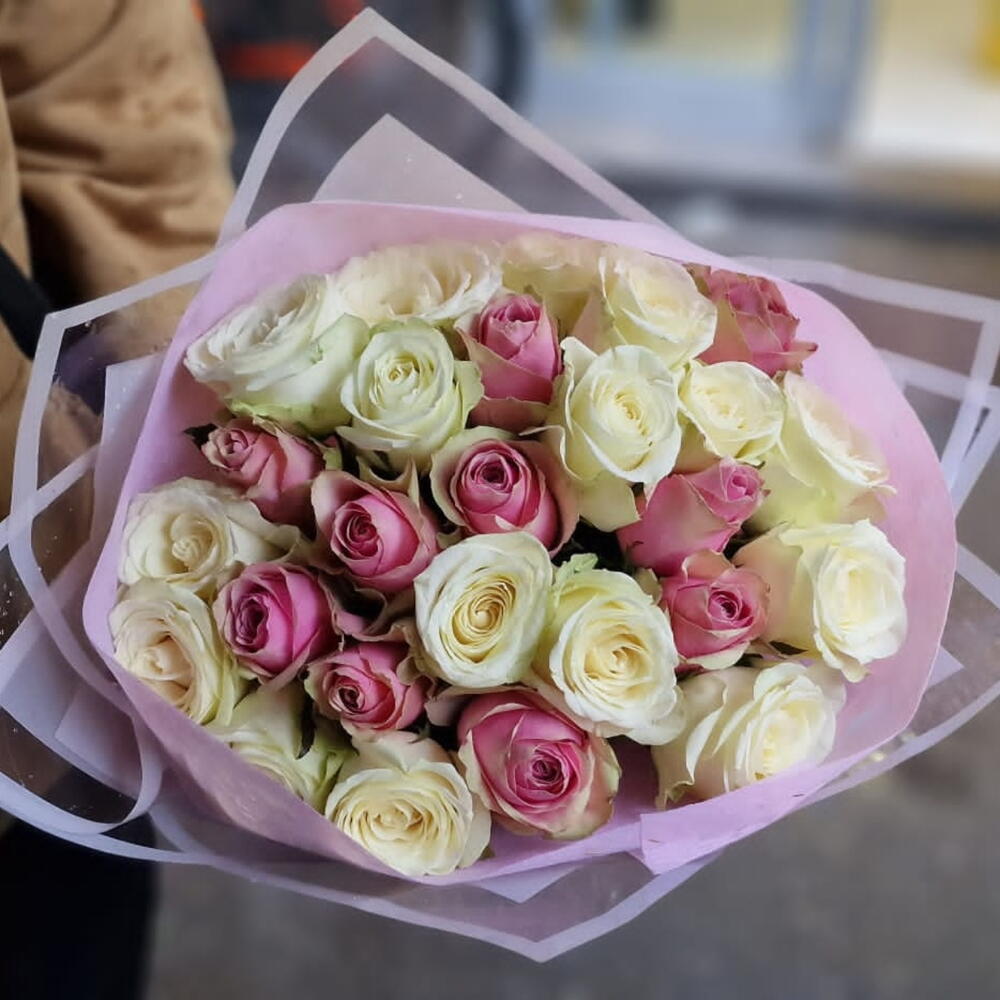 Decoration - 2 pcs decor - 3 pcs pink premium roses - 10 pcs white premium roses - 15 pcs