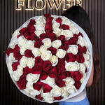 Indulge in the breathtaking allure of this Mono Bouquet, composed of an even split of 50 radiant red roses and 50 pristine white roses. Each blossom is hand-selected for its beauty and freshness, creating a striking contrast that captivates the senses. A statement of grandeur and elegance, this majestic bouquet is a perfect gift for every occasion.