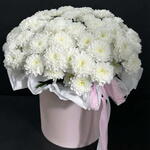 This is the perfect gift for those who value elegance and practicality. Chrysanthemums are champions of longevity, and thanks to the floral foam inside the box, the recipient does not need a vase. Simply add a small amount of water to the center of the arrangement every couple of days.
