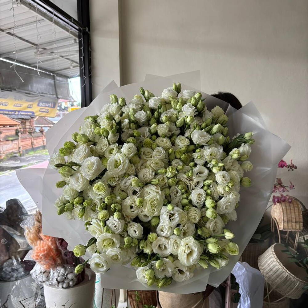 An ultra-voluminous bouquet of delicate white lisianthus — pure, elegant, and effortlessly luxurious. Like a soft cloud of flowers, designed to impress at first glance.