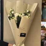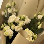 Ribbon - 1 pcs Eustoma white - 5 pcs paper - 3 pcs