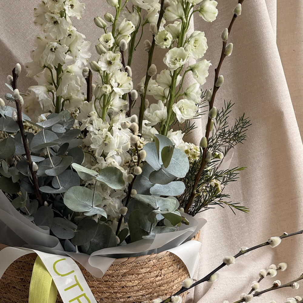 White flowers basket with Willow