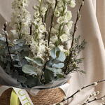 Eucalyptus - 2 pcs willow - 3 pcs delphinium - 4 pcs chamelaucium - 2 pcs