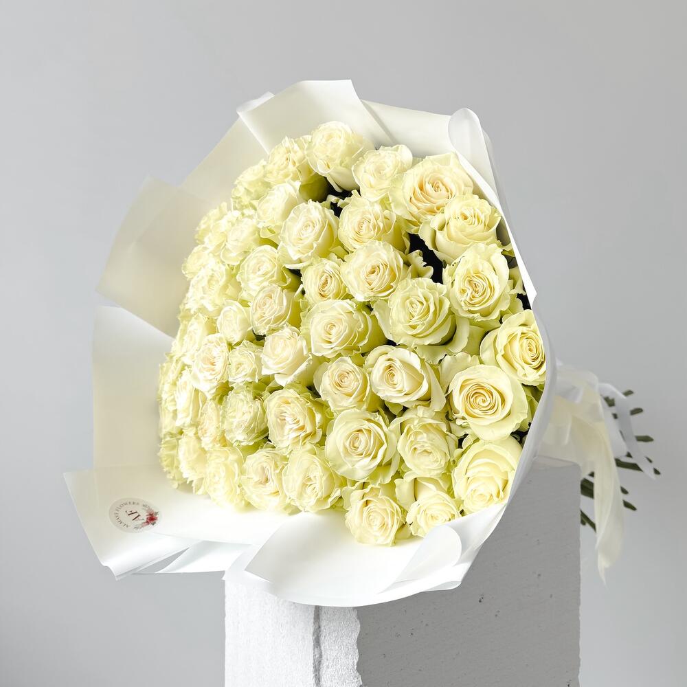 White roses bouquet 51 pcs