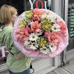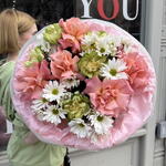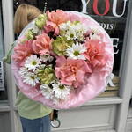 Букет красивый получился. Доставили немного позже назначенного времени, не критично для нас это было. Фото отчет сделали быстро. Доставка считаю дорогая, плюс большие розы не первой свежести были.