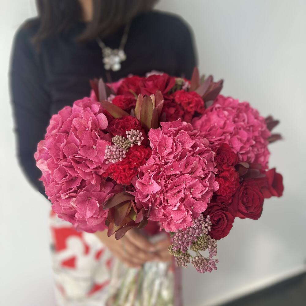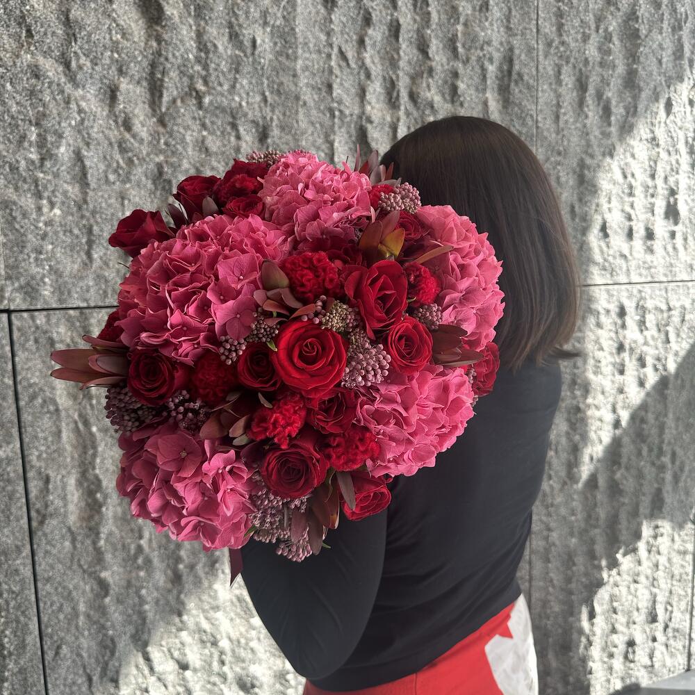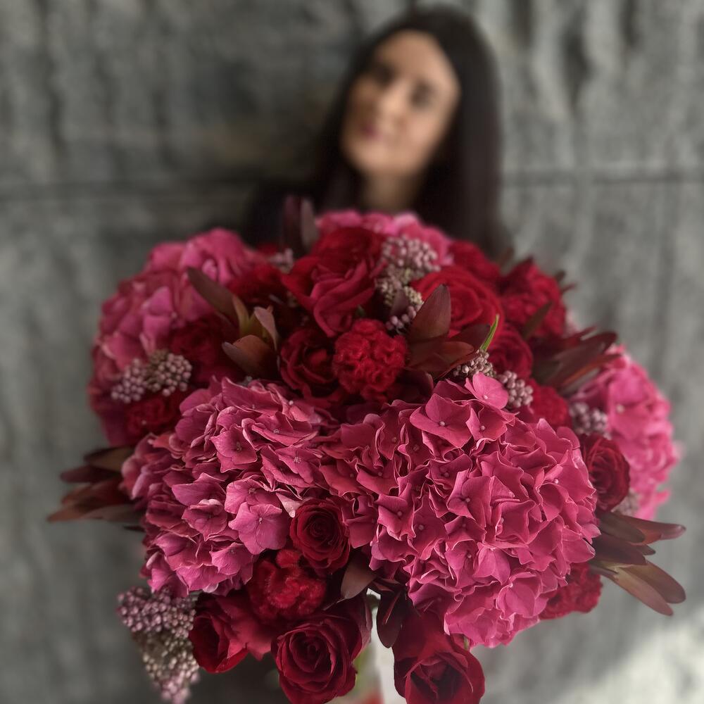 hydrangea - 5 pcs celosia - 10 pcs roses - 17 pcs sinderela - 9 pcs spray single - 8 pcs