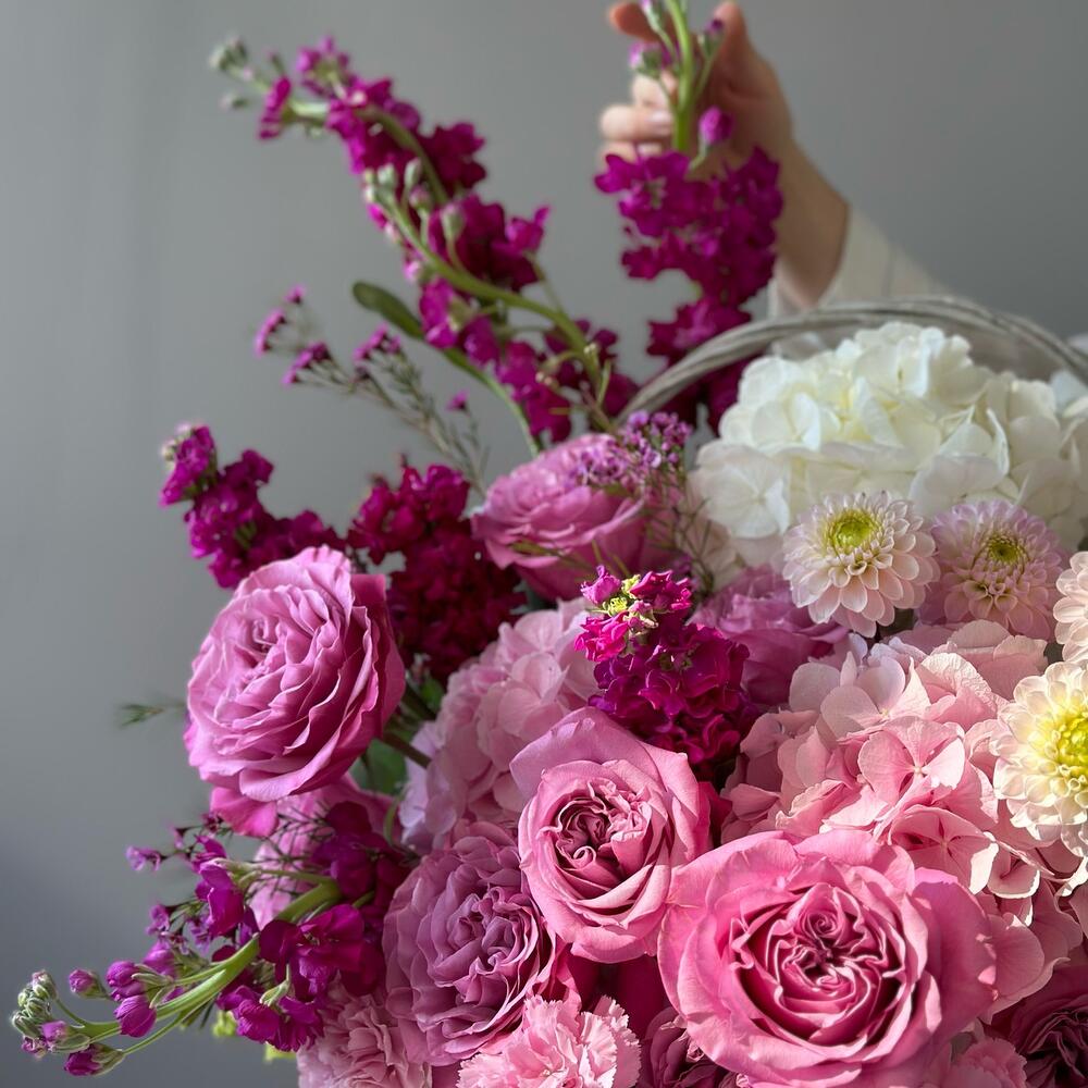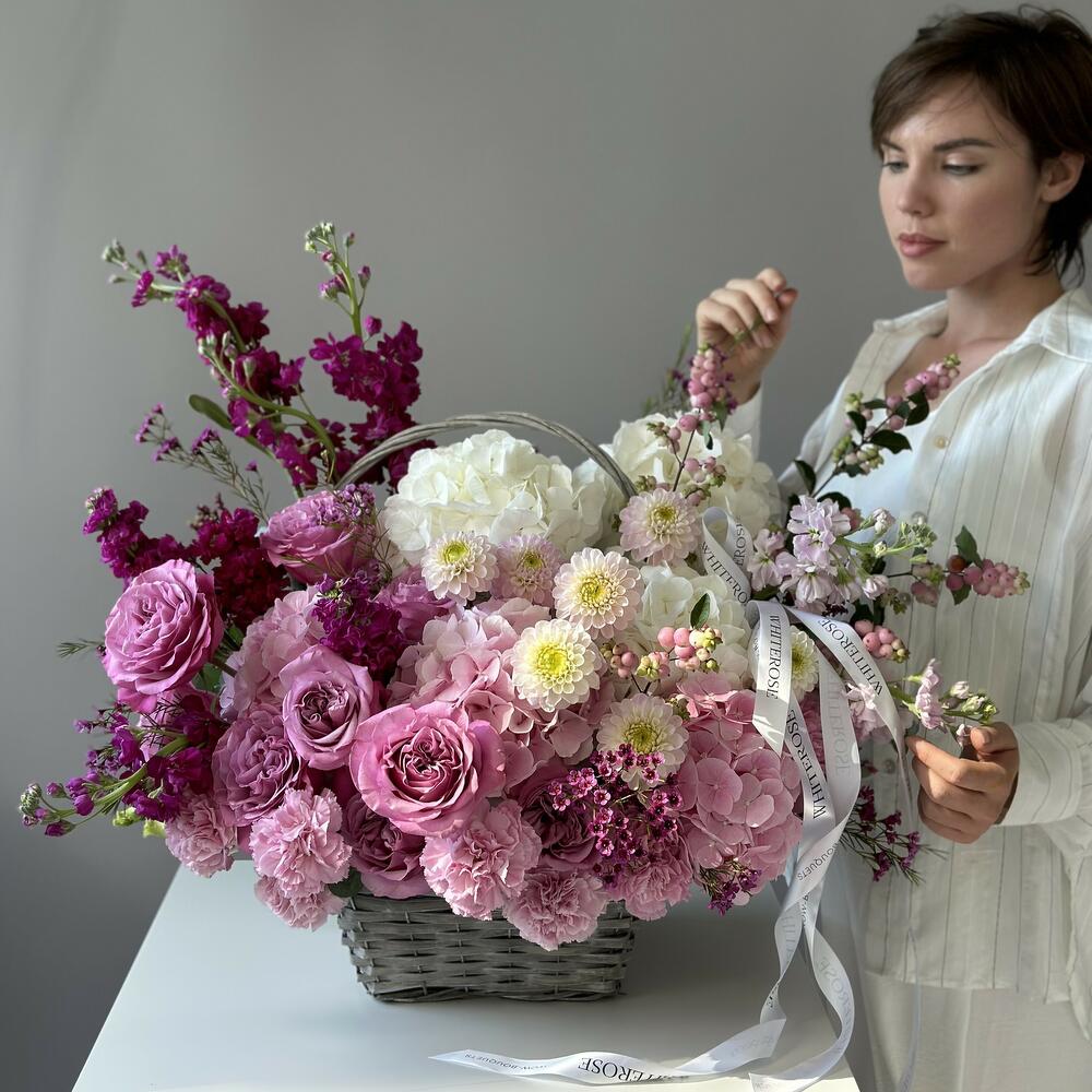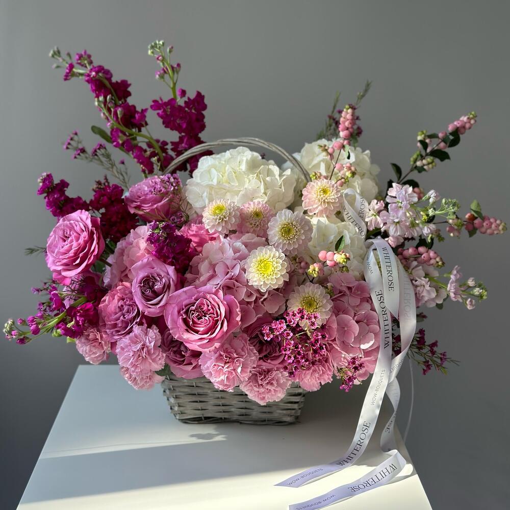 An impressive basket of flowers will be a great gift for someone important to you. Fresh composition, modern shape and harmonious shades - will create a stylish composition that is a pleasure to present!
