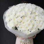 Incredible volume and longevity! This bouquet of 45 spray chrysanthemums looks magnificent—like a giant snowy cloud. Thanks to the lush blooms on each stem, this arrangement looks visually larger than 100 roses and is guaranteed to impress. Incredible volume and longevity! A bouquet of 45 chrysanthemum branches looks impressive—like a giant, snow-white cloud. Because chrysanthemums are a branching flower, the bouquet is visually larger than 101 roses and makes a huge impression.