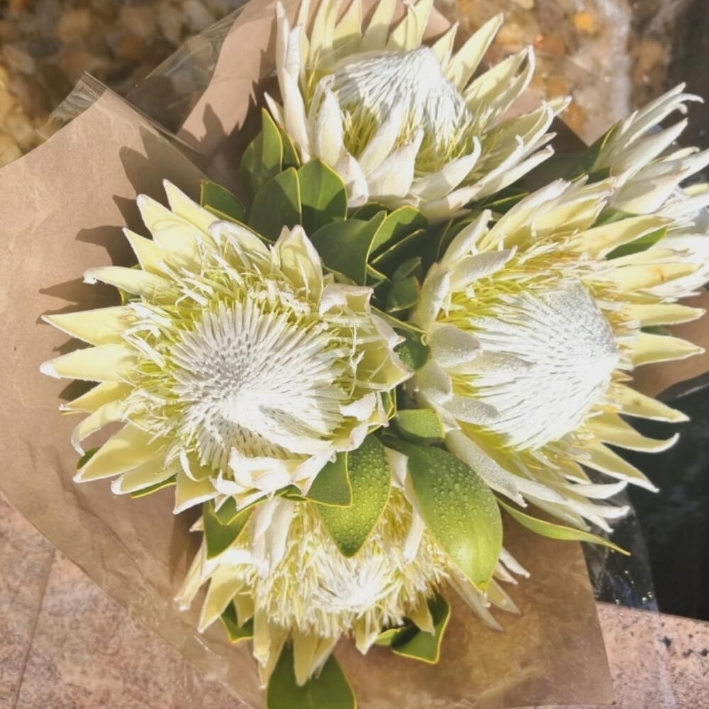 Wrapped bouquet of king protea
