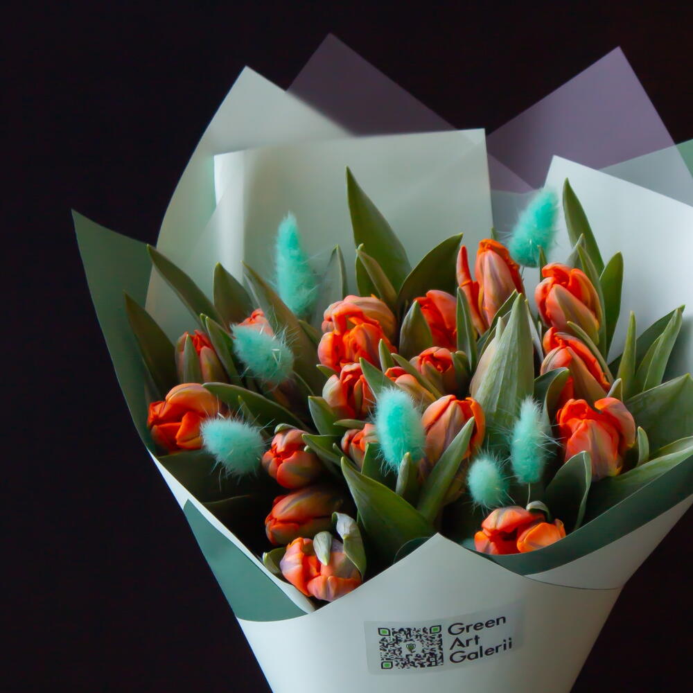 Tulip - 17 pcs lagurus (dried flowers) - 11 pcs korean foil - 5 pcs