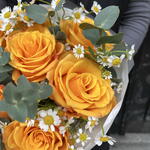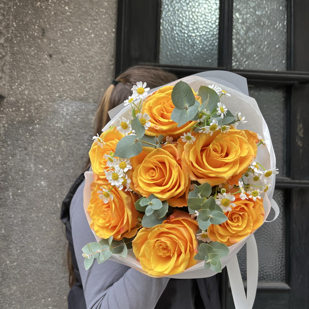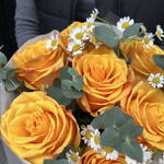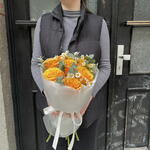 Eucalyptus - 4 pcs rose yellow - 7 pcs tanacetum - 3 pcs designer wrapping - 1 pcs