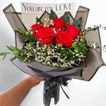 Indulge in the exquisite simplicity of our Mono Bouquet, a study in understated elegance. Carefully curated with 2 sprigs of refreshing eucalyptus, an artfully placed aralia leaf, a sprinkle of delicate white gipsofila, and the deep allure of 5 crimson Ecuadorian roses nestled among 3 ferns, this bouquet is an evocative blend of textures, colors, and scents, designed to enthrall your senses. Whether as a luxurious treat for yourself or a heartfelt gift for a special someone, this bouquet speaks volumes of unspoken love, timeless beauty, and poetic emotions.