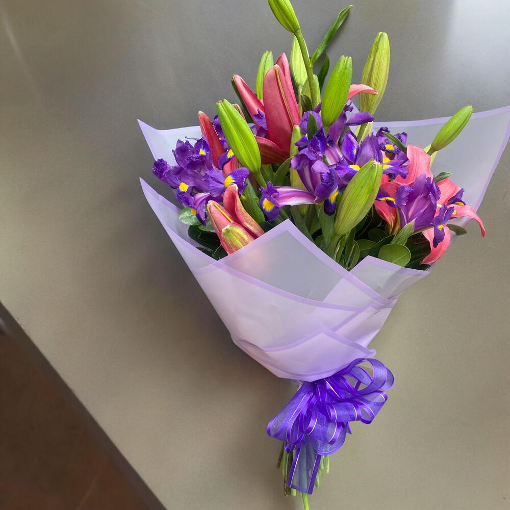 lirios - 15 pcs lilis - 5 pcs papel frances - 2 pcs liston organza - 1 pcs
