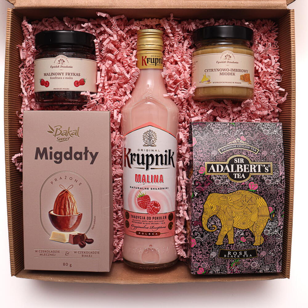 Sweet Gift for Her A special set with sweets, raspberry liqueur, and tea. Ideal for bringing joy and giving a moment of pleasure. 🎁 Ready to gift 🚚 Fast delivery 💖