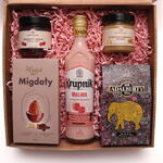 roasted almonds in chocolate bakal 80g - 1 pcs krupnik raspberry - 1 pcs tea sir adalbert's tea - 1 pcs raspberry treat - 1 pcs lemon-ginger honey - 1 pcs