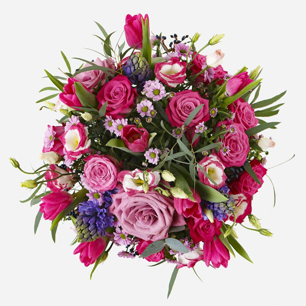 Eucalyptus - 2 pcs Chrysanthemum - 5 pcs Lisianthus - 3 pcs rose - 8 pcs