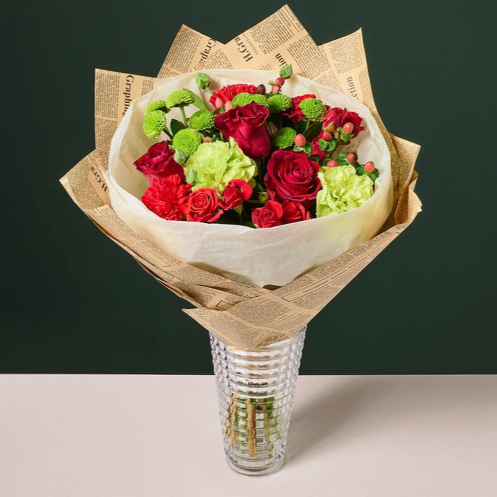ורדים אדומים - 5 pcs חרצית - 2 pcs דיאנטוס - 5 pcs