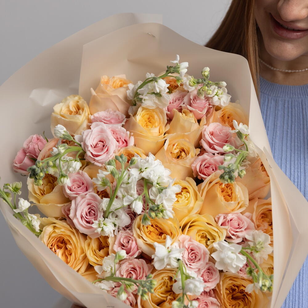 Un bouquet de bonheur Taille L (roses de jardin, roses spray, giroflées)